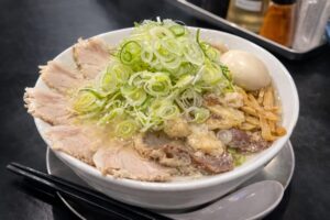 あとはそっとモヤシともう一枚のチャーシュー乗せてニンニク乗せて、