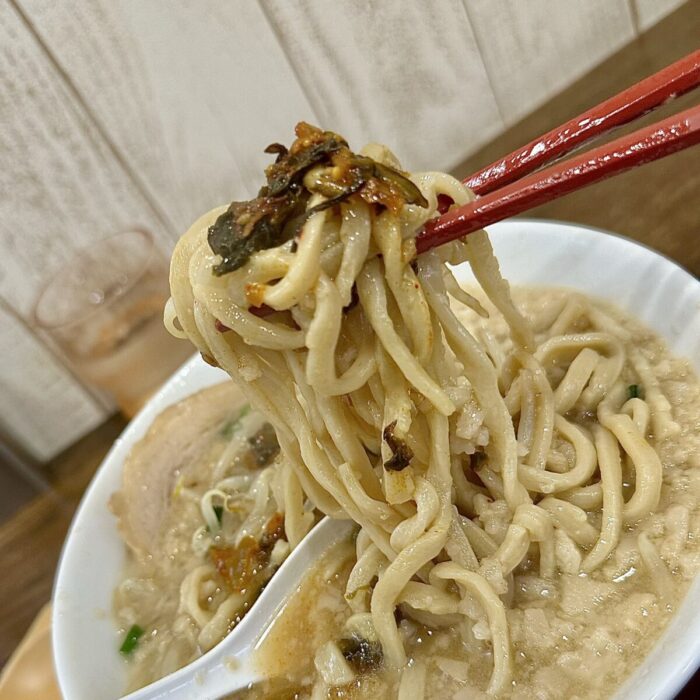 麺は期待通りのガッシガシのゴワッガシ、これならオーションオーション騒ぐ一部のヤマモリヘンタイさんも納得