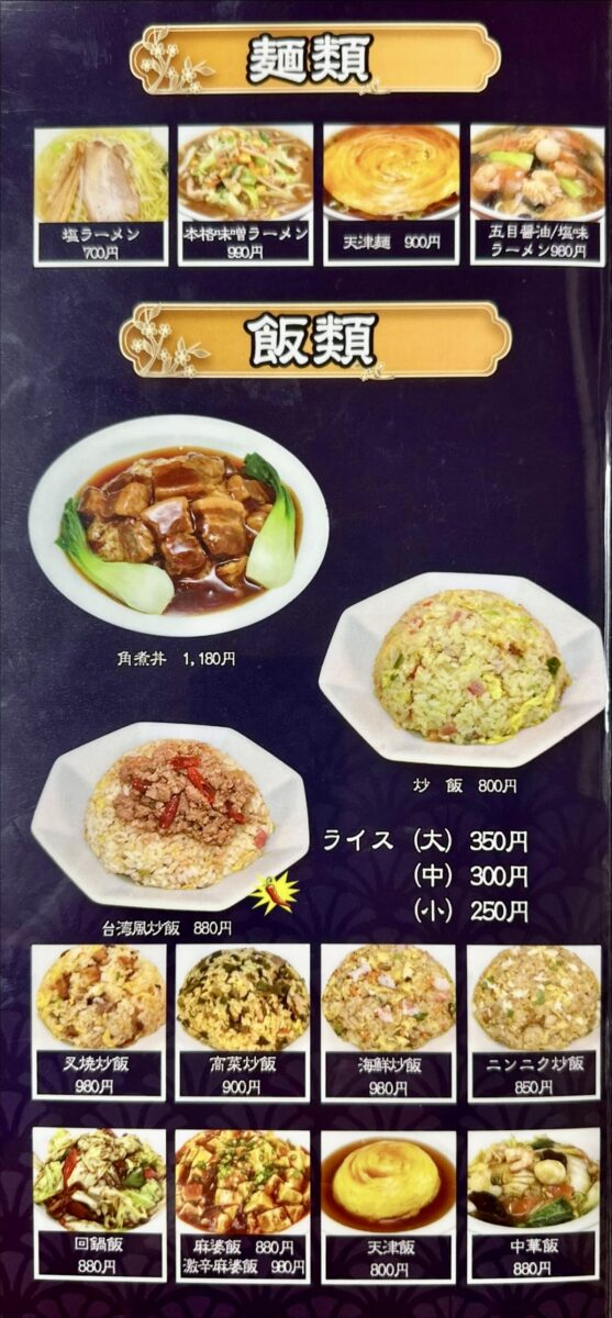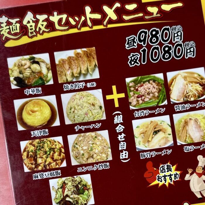 対して”飯”で選べるのは「中華飯」「天津飯」「チャーハン」「麻婆豆腐飯」「ニンニク炒飯」「回鍋肉飯」の5種類