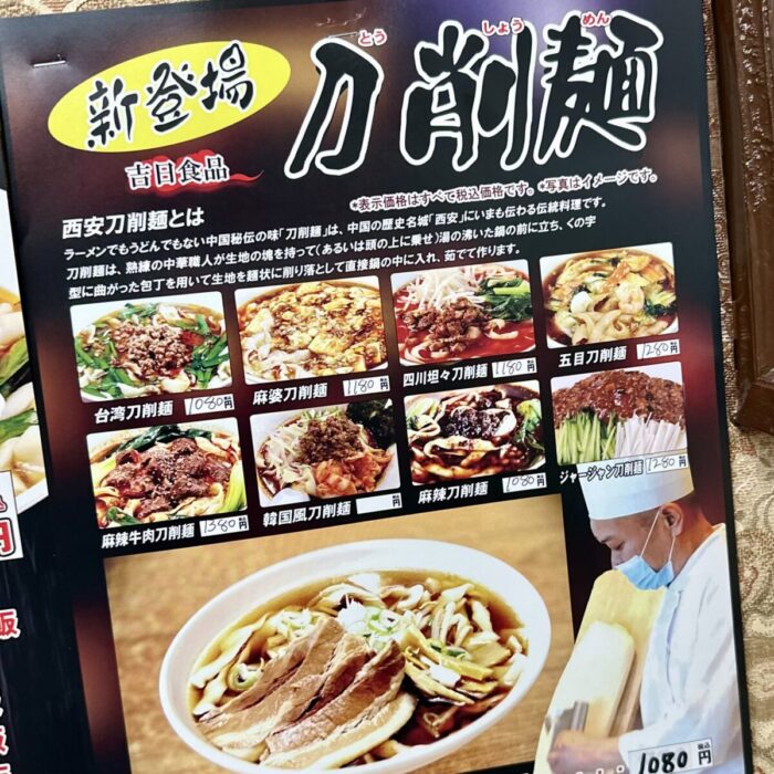いつかは食べてみたいランキング常にトップ10の刀削麺、できれば目の前でシャッ、シャッ、ってやってほしいランキング不動の1位の刀削麺