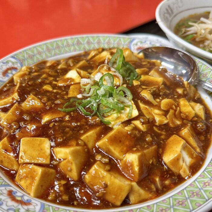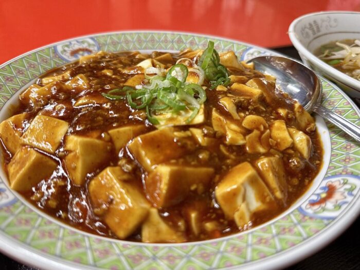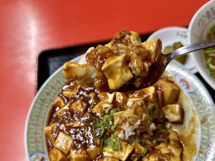 ピリ辛仕立てのマーボーが食欲そそる麻婆豆腐飯は味良し、盛り良し、見た目良しのちょんどよさ