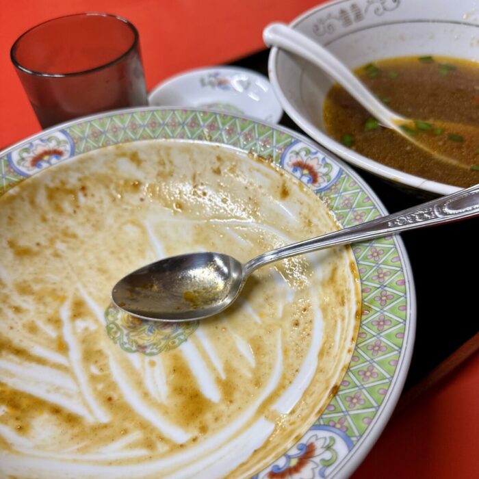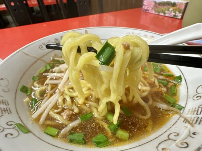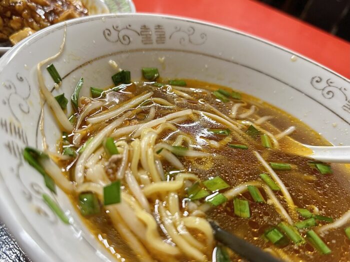 何の邪魔もしないアッサリスープと独自の主張少なめ中華麺、なるほど飯のお供としては完璧すぎる