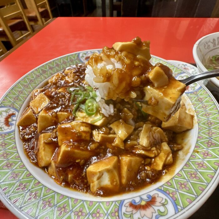 たっぷりめのご飯にたっぷりめに乗ってる麻婆豆腐、もはやこれ飲み物