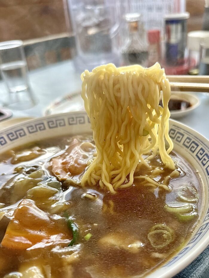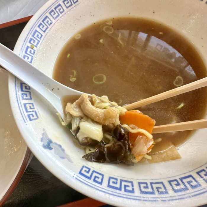 スープはまさに王道町中華のド真ん中、誰よりも主張してるんだけど主張しすぎない悪玉サウナオッチャン達のステルス垢コスリぐらいのまさにそれ
