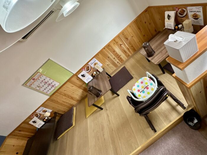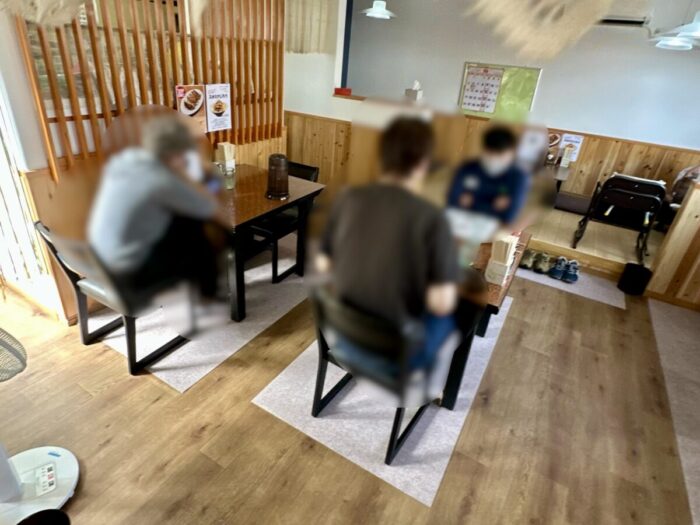 最奥には小上がりスペース、テーブルが全3卓にそれぞれ座布団がひーふーみーよーえーっとえっと(;´Д`)