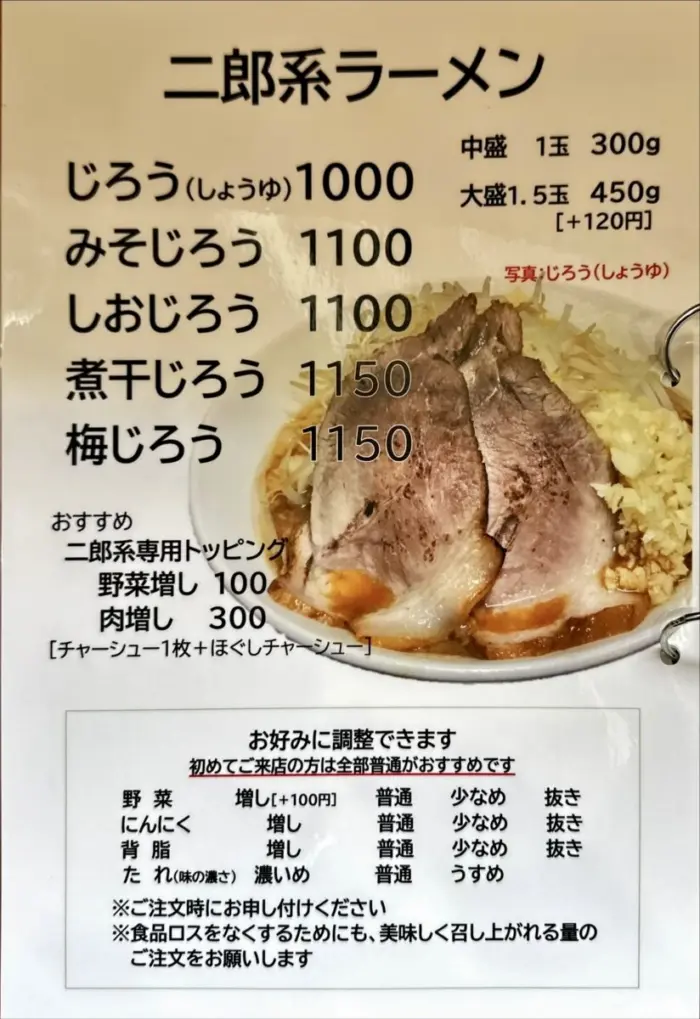 二郎系専門店をやめてもメニューに残ってる”じろう”、これならヤマモリ変態も安心だぁ(๑′ᴗ‵๑)
