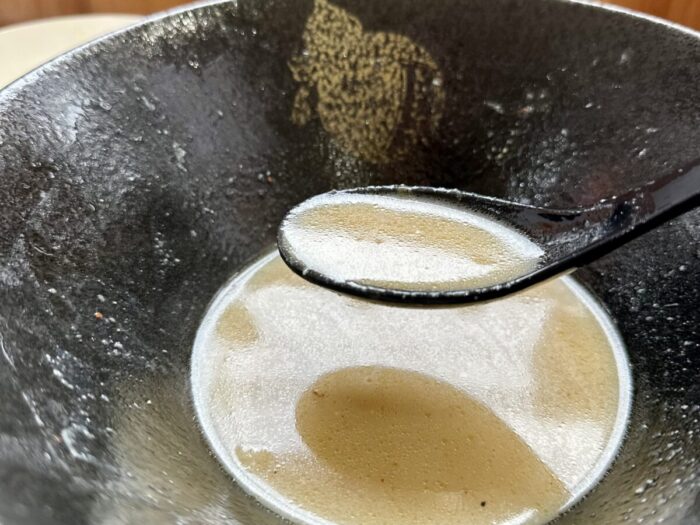 スープは甘めの優しめのゆっくり奥からコクが忍び寄る、そんなイメージの味