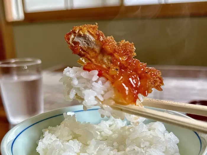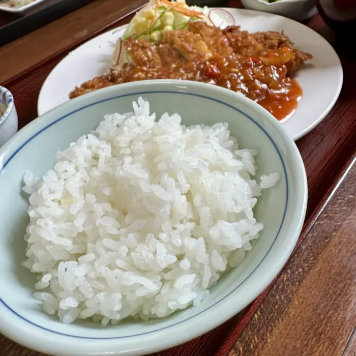 もちろん白ご飯も良き炊き加減、これならなんぼでもオカズ入ってくってもんで(。・д・)☞