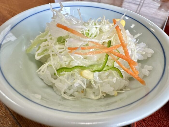 んだじゃんだじゃ、ライスに千切りキャベツば敷くのを忘れてらった(˚ଳ˚)