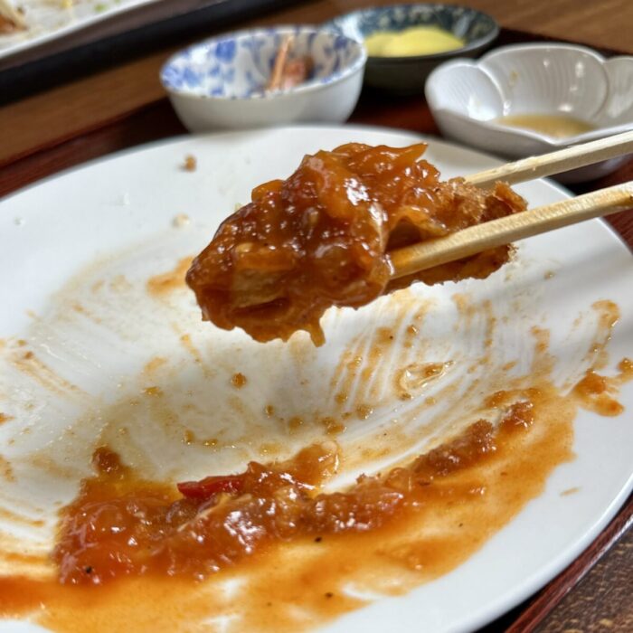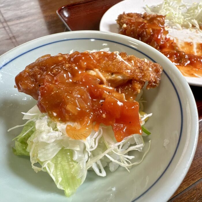 揚げ物特有の重さ・クドさなんかのデメリット面が、トマトの酸味で逆にプラスに傾くケミストリー