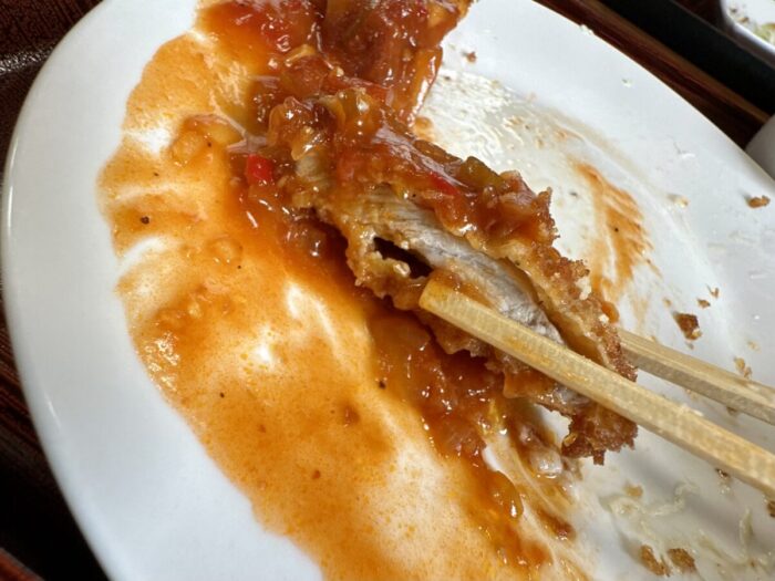普段ならどっぱどぱに掛けるはずのソースなしでこの旨味とコクと満足感、喰ってるだけで健康なってるような気までしてくる不思議飯。