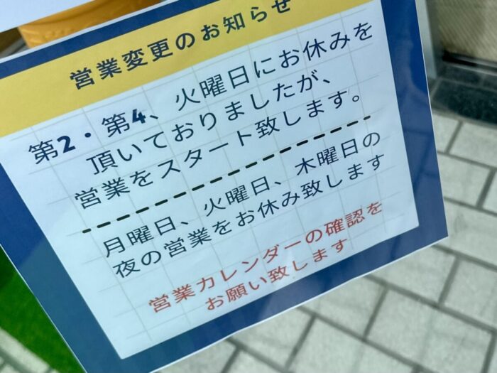 おっふなるほど、つまり水曜以外は毎日やってて金土は夜営業もやってるってことだのよ(ό௰ὸ)