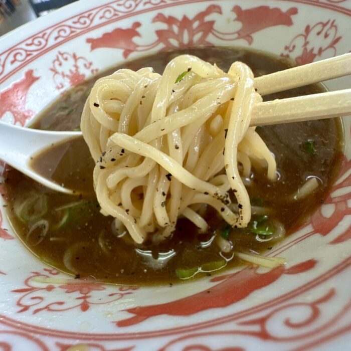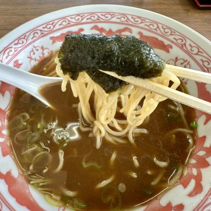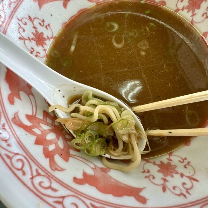 そのツルツルしたススり心地に煮干しスープの塩ッケ乗って、さらに加速する半ライスの減りっぷり