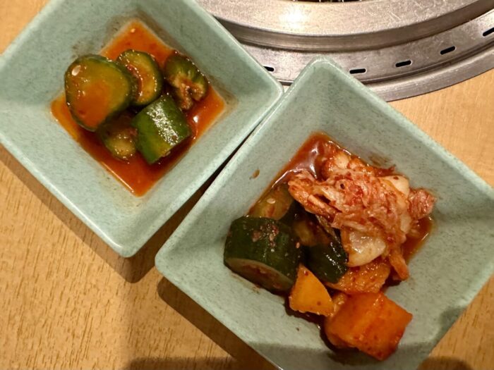 まずはこれから荒れるだろう腸内環境に少しでも善玉菌を、「きゅうりキムチ」「キムチ盛り合わせ」のダブキムスタンバイ