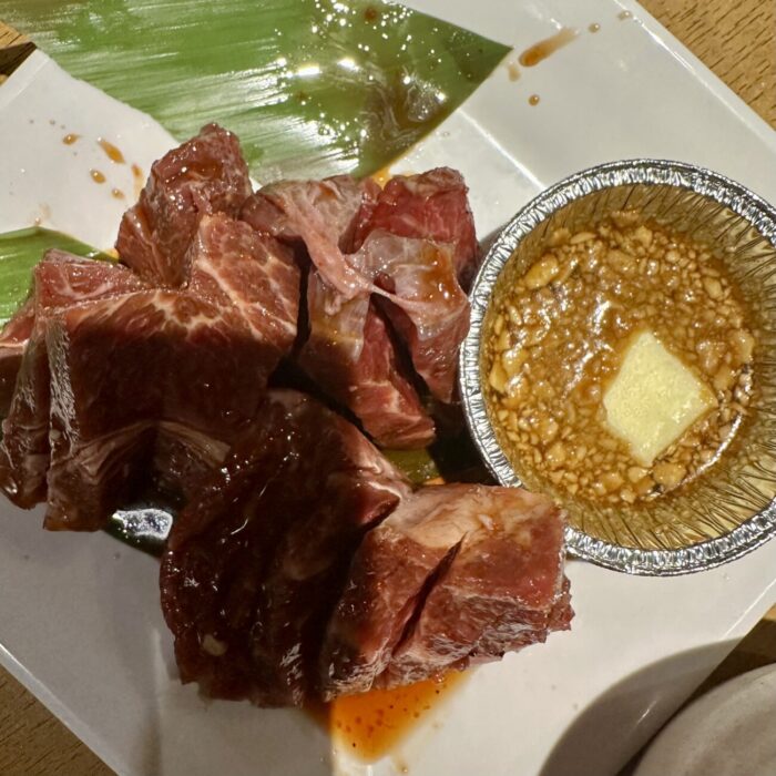 もうこうなったらとことん血管いじめたい、からの名物「厚切り上ロース(with ガリバタ醤油)」も人数分バヂッと注文