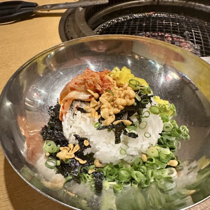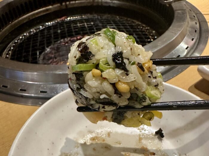 今日を炭水化物のチートディってことにして、ってことで「韓国のり玉ごはん」×2、「[焼肉専用]とろろごはん」