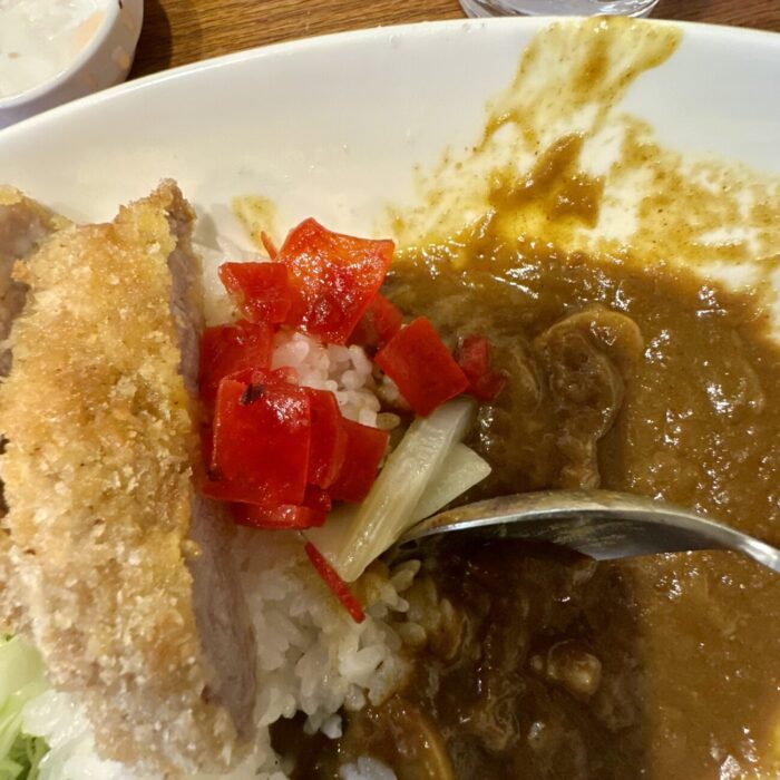 そしてカレー、これまた絶対に家で作れないタイプの極上品で、芳醇なスパイスの香りと甘くて辛いその味付けに、ひと口目から即虜。