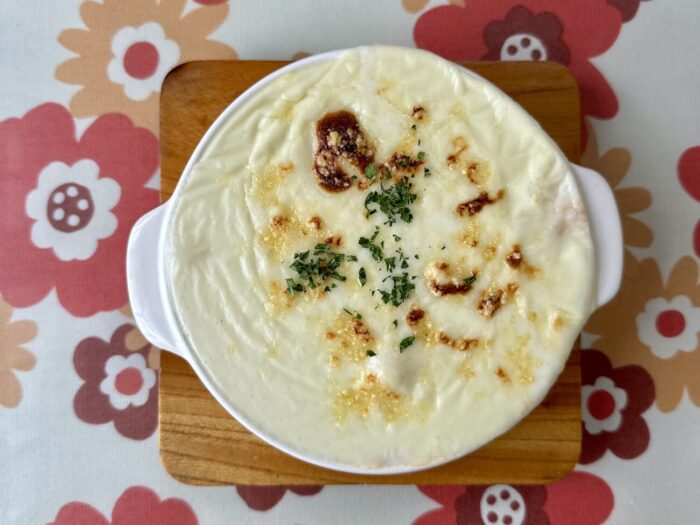 こちらオツレサマ注文分、ぶりっとしたエビととろけるホワイトソースのマリアージュだかなんだか「エビドリア ¥890」