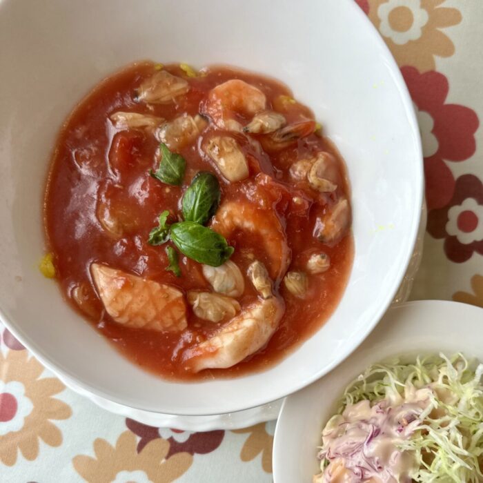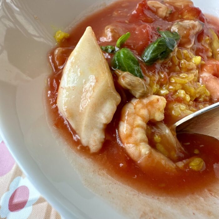 それはイカ・エビ・アサリにホタテにトマトソースでドロッドロ、見た目でもうツヨッツヨ