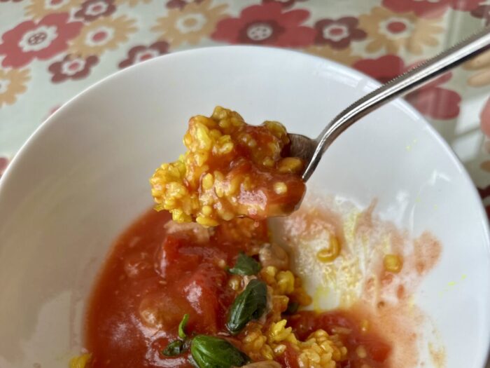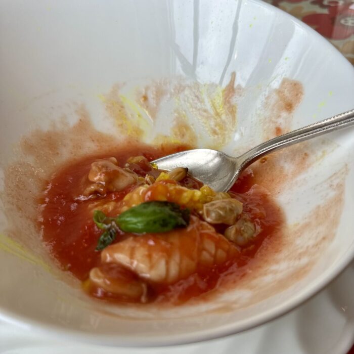 トマトの酸味と具の旨味、もちゃもちゃ喰えば自然と緩む頬、そして鼻から抜けるオリーブオイルの静かな余韻。