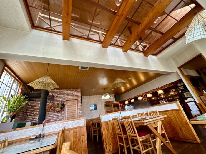 天井高い店内は明るく開放的、早くももうすでにイイ