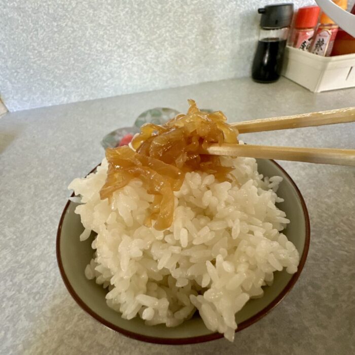 まだまだしゃっこいオニグちゃん、まずは汁浸し5分コース、イッテラッシャイ