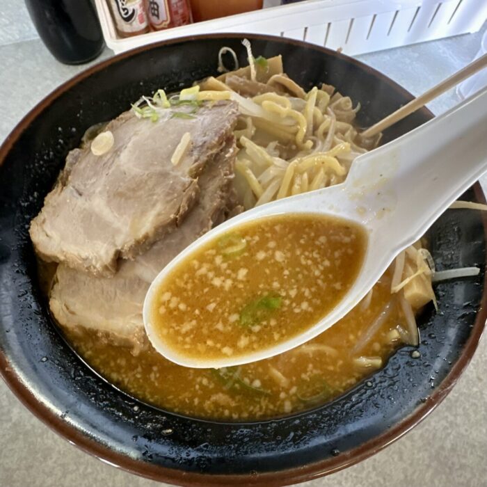 スープはタマ・クマグループ自慢の味噌ダレに、チャッチャな背脂を溶かし込む、旨味と甘味をダブル追求の欲張り系。