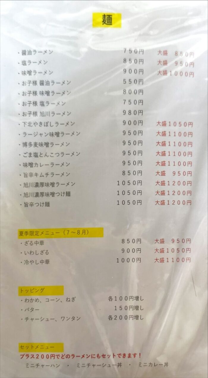 旭川濃厚味噌ラーメン … ¥1,050