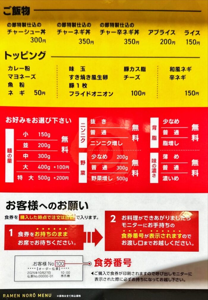 ラーメン中(300g) … ¥1,100