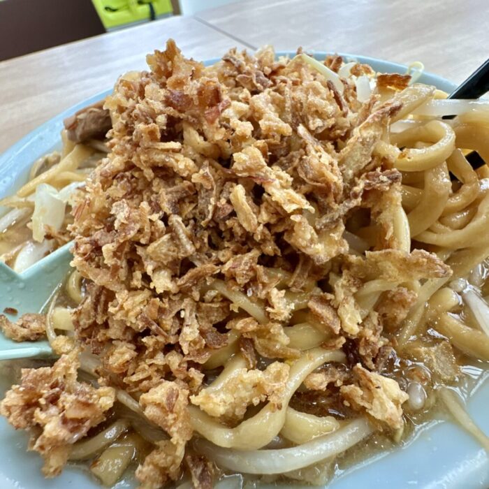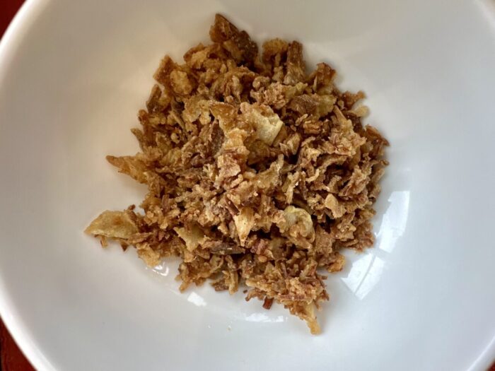 さらにフライドオニオンも全投入、シャリッとした食感と香ばしさで満たされかけた食欲もいったんリセット
