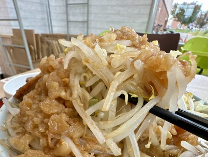 アブラ絡めつつのヤサイとまだ浸りきってない若いブタ、ひと口目からそれそれそれぞれへの罪悪感がもうすっごい