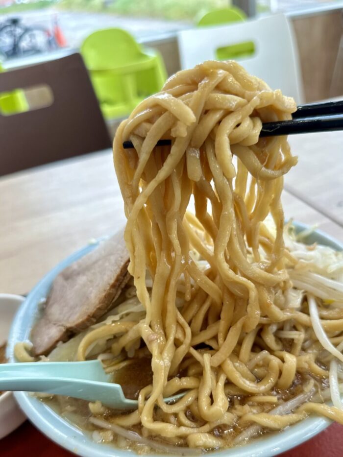 麺はもちろん自家製麺、それも今回の出店に合わせて導入したというお高い特注切り刃の極太麺