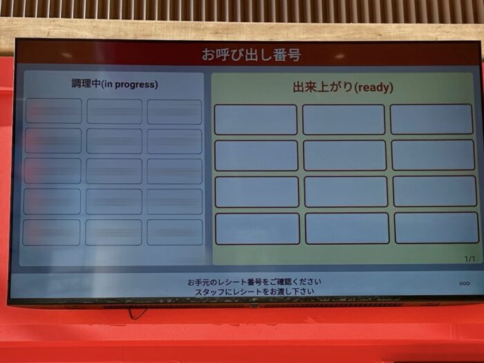 なるほどふむふむ、買った食券持って順番待ちのモニターをばボゲッと眺めて待てってことね