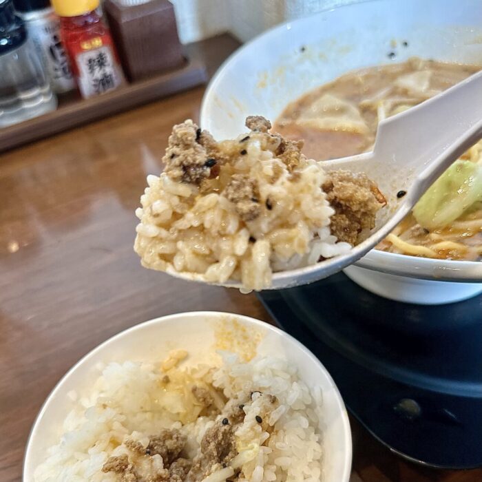 山に盛ったライスはススったラーメンの余韻でパクパク喰ってももちろん良いし、