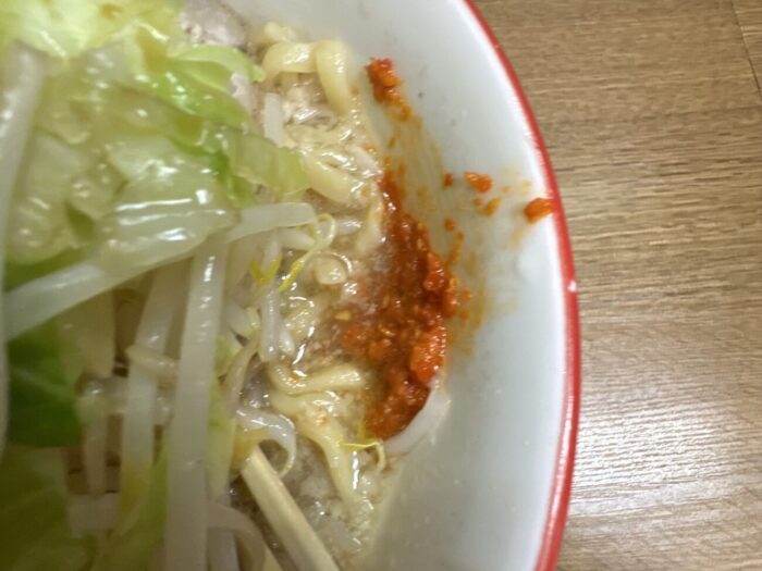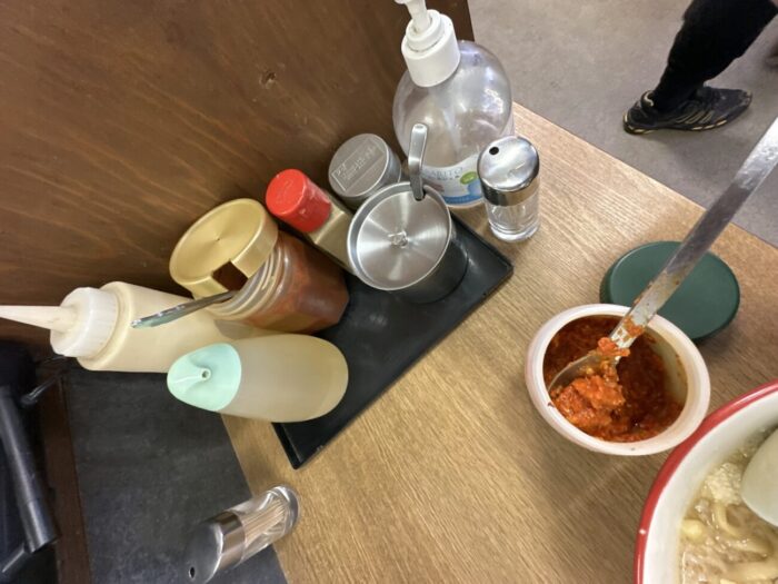受け取り口横の調味料から使ったのは豆板醤、ある程度の味予想できるスキルが絶対必要
