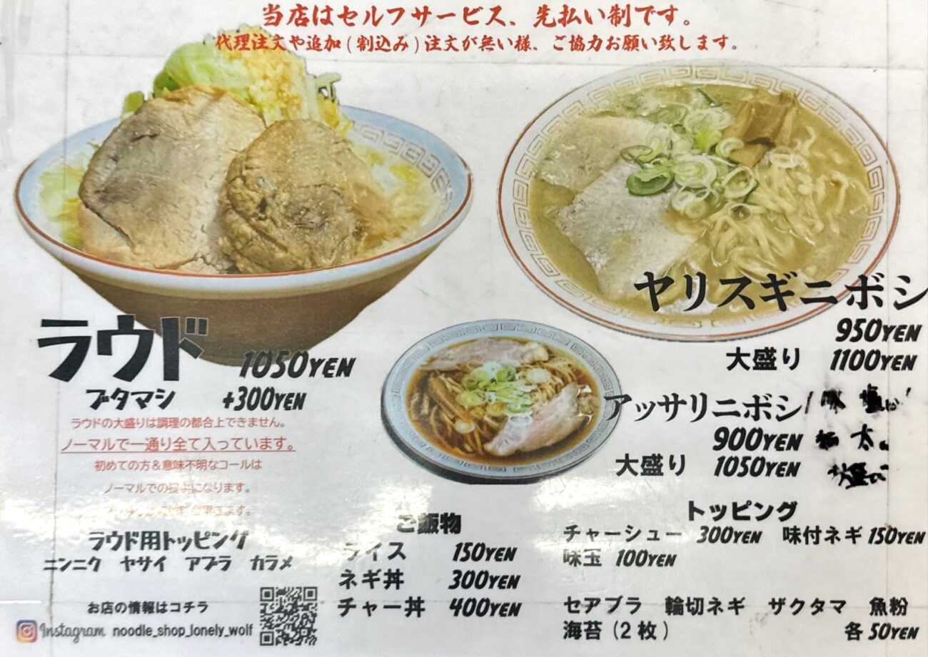 一匹狼といえば特徴的なのが窓口注文&前払いシステム、そこで悩む時間で場をピリつかせるぐらいなら本ブログ熟読のうえメニュー決め打ちで向かいましょう₍₍ᕕ(´ω`)ᕗ⁾⁾
