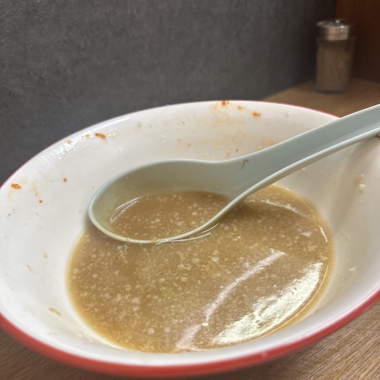 スープは濃すぎずショッパすぎずのハイバランス、どことなくヘルシーな味わいもありつつ割スープあったら結構イケるやづ