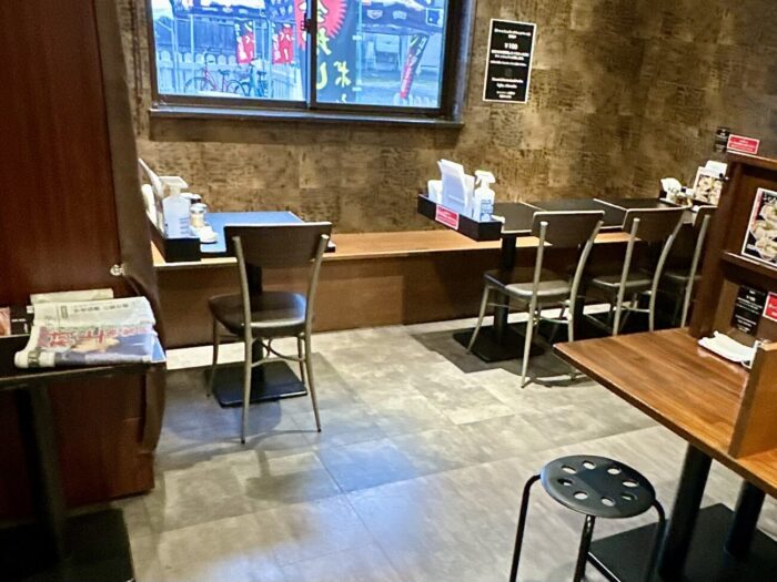 オーダーは券売機で買った食券を受け付け窓口に出すスタイル、このとき座る席も指定されるから聞く耳もって待ちましょう