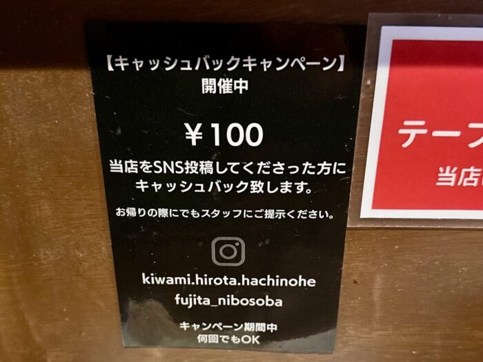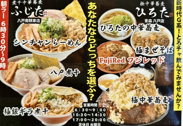 | 営業時間 | 6:30〜9:00(煮干中華蕎麦ふじた) 10:30〜14:30、17:00〜20:00(極中華蕎麦ひろた) |