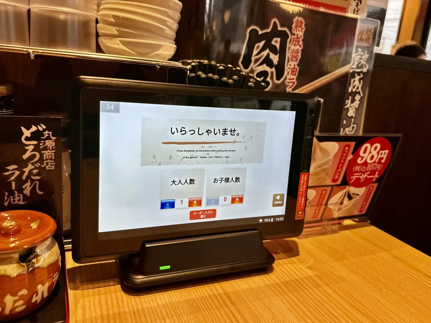 オーダーは備え付けのタブレットにて、きんぐで慣れてる腕の見せ所
