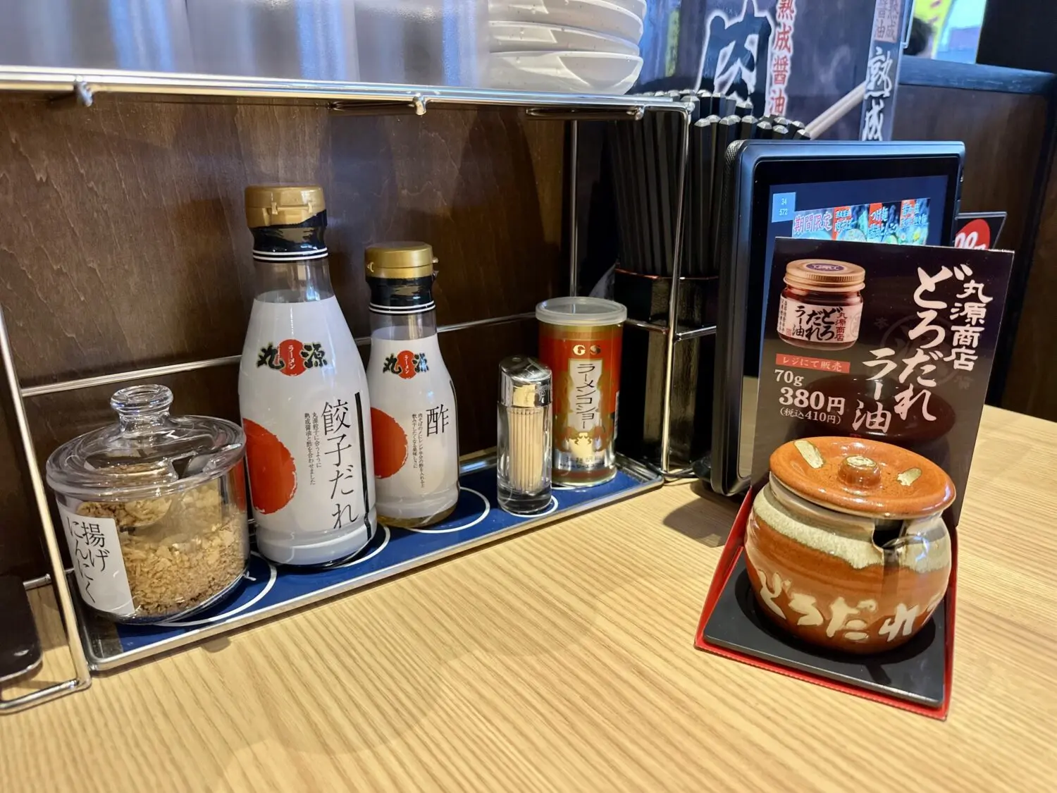 丸源といえばこの”どろだれ”、それが何なのか、いわゆる特製ラー油と何がどう違うのかはどうぞ各自Google先生に聞いてみてー( ತಎತ)
