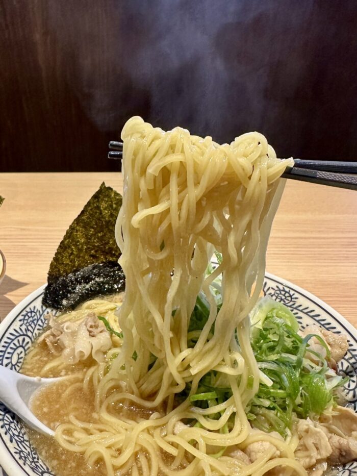 麺は多加水クニクニタイプの中細麺、「肉そばのスープに負けない!」をテーマに作られた香り高い逸品