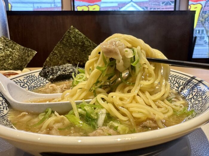 「肉そばのスープに負けない!」をテーマに作られたというその麺は、スープの持ち上げ効果に食べ心地と腹の持ちでなかなかに良き。
