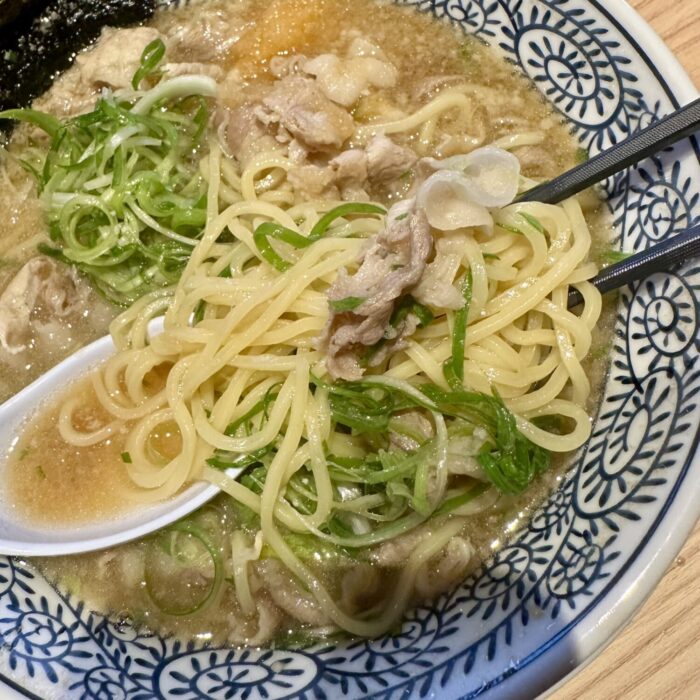 たっぷり乗ったネギを絡めて一気にすする、人間レベルが上がるのはもちろん、これで口臭レベルも一気に跳ね上がるってのがミソ( ^ิー^ิ)