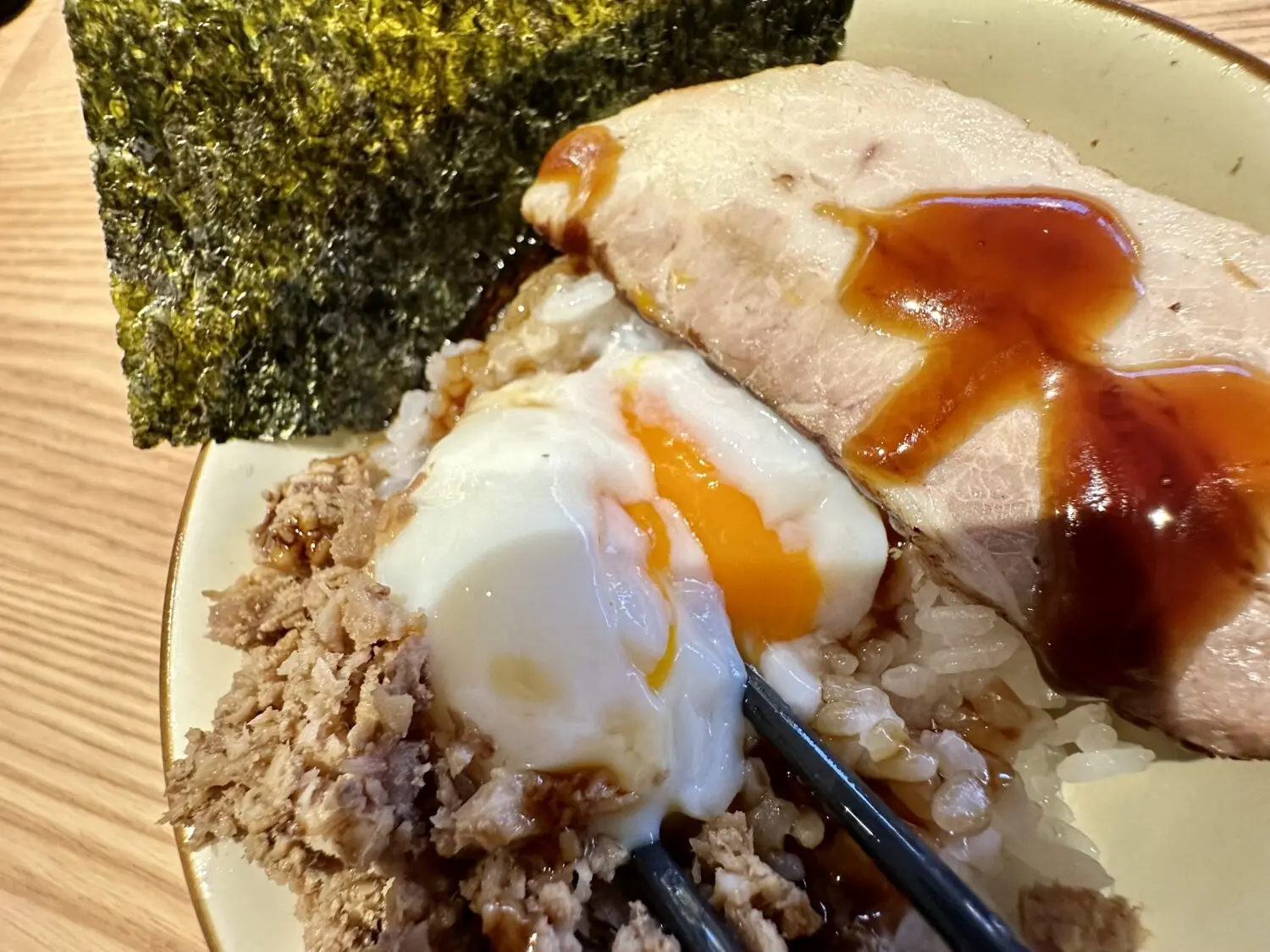 「どろだれ」が万能調味料だって気付いてしまったハイボールマン、温玉チャーシューご飯にもちょびっと乗せて、