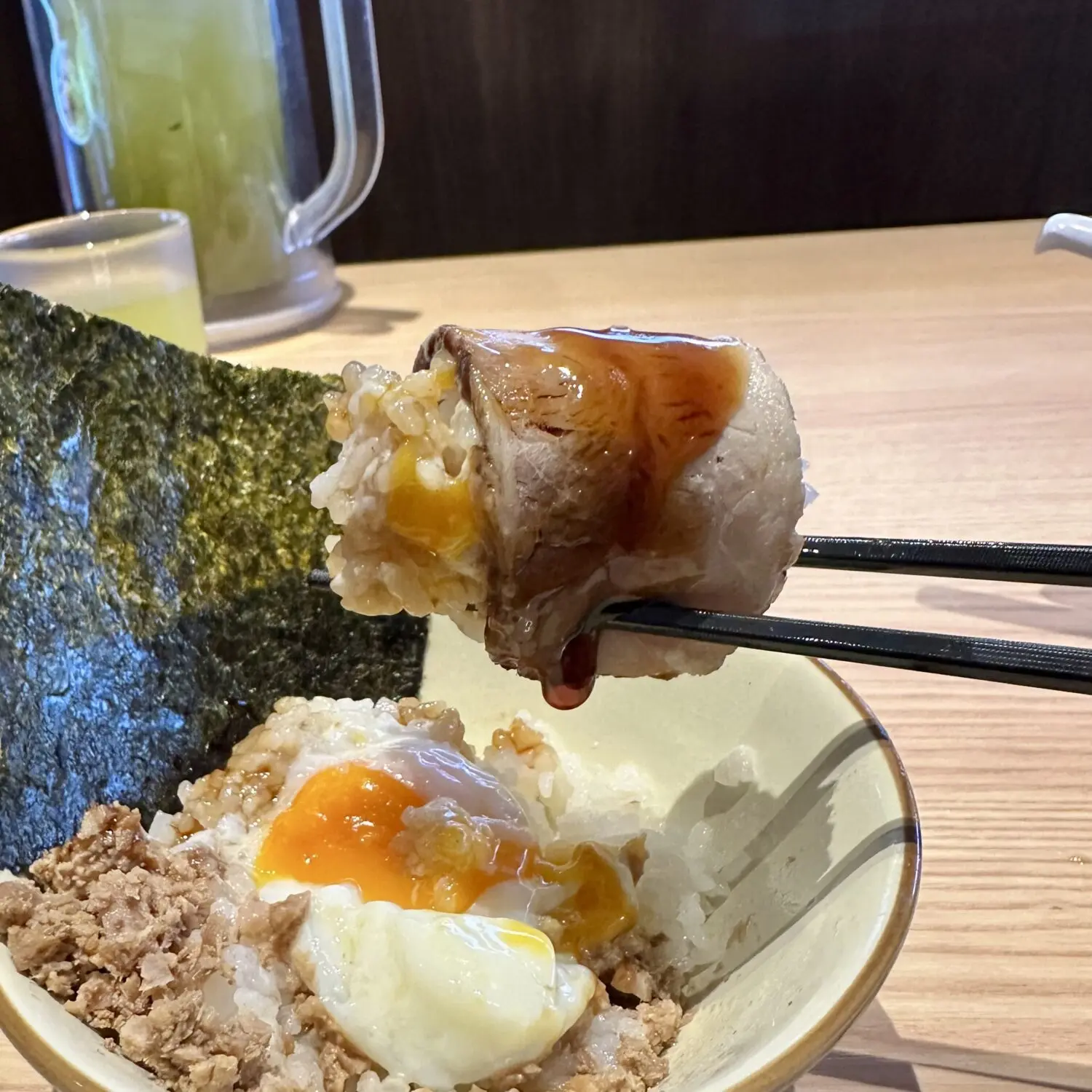 さらに今日は何だか喰えそうな気がして「温玉チャーシューごはん ¥374[税込・セット価格])も併せて注文