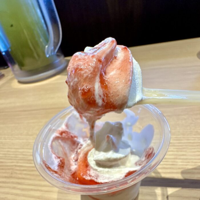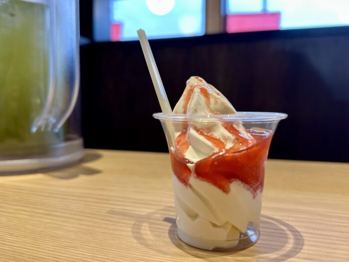 食後は焼肉きんぐでもおなじみスィーツ、「カップソフト(いちご) ¥107」で〆もばっちり