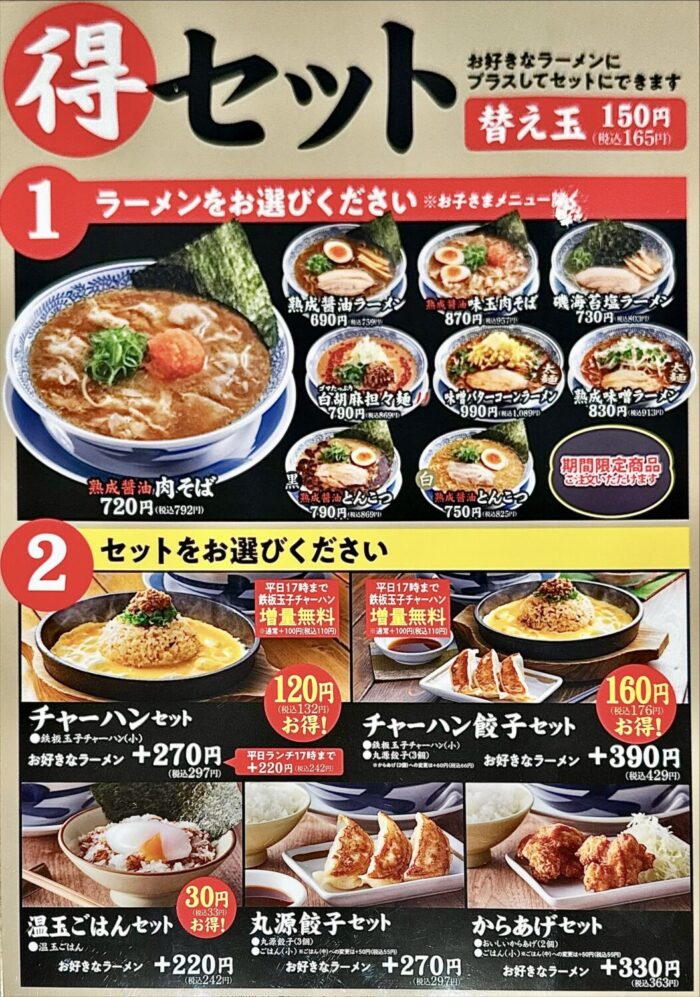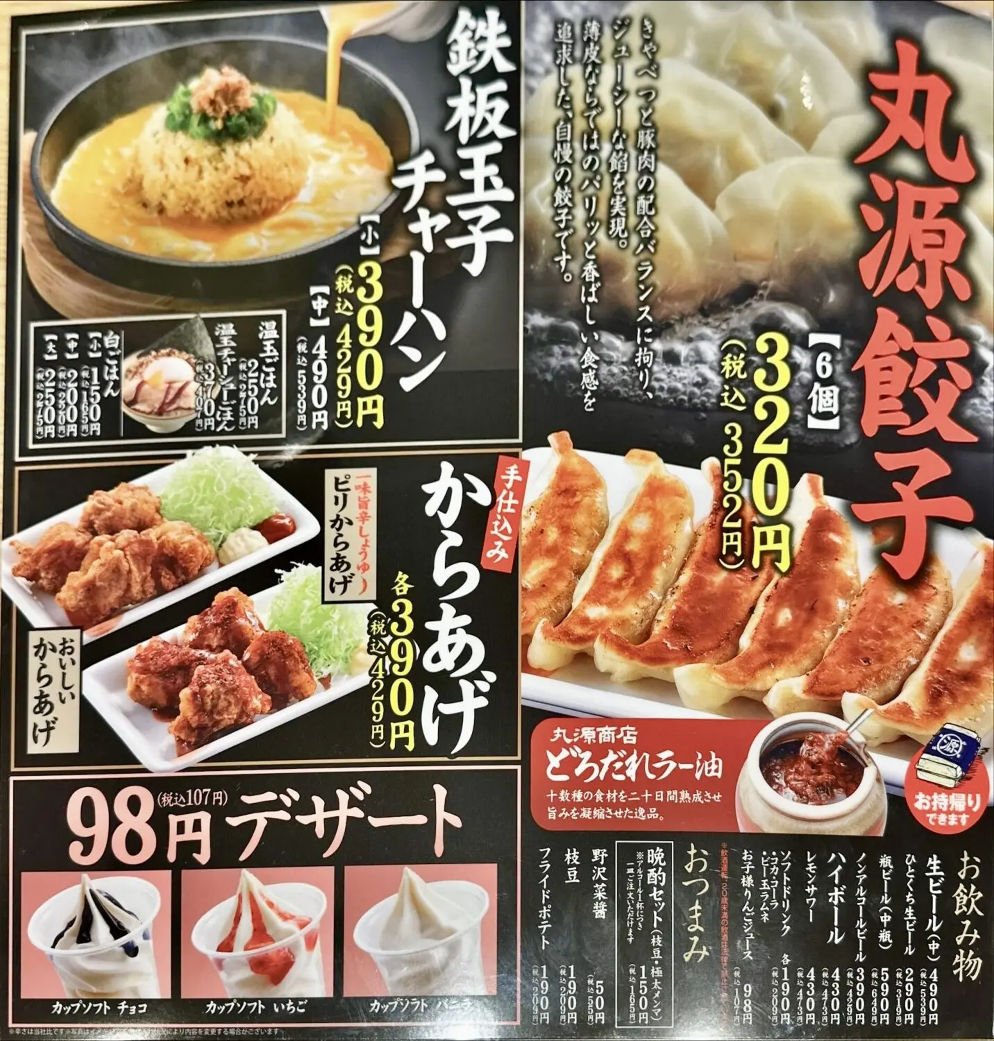 鉄板玉子チャーハンや温玉ごはん、丸源餃子にピリからあげに枝豆だったりポテトだったり。