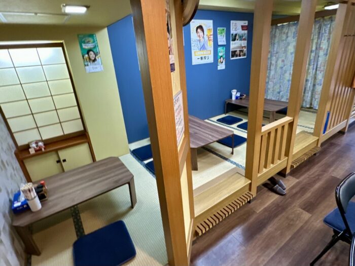 小上がりテーブルが4人掛けで計3卓、つまり全部のキャパでいったらえーっとえーっとあのそのえーっと(;´Д`)