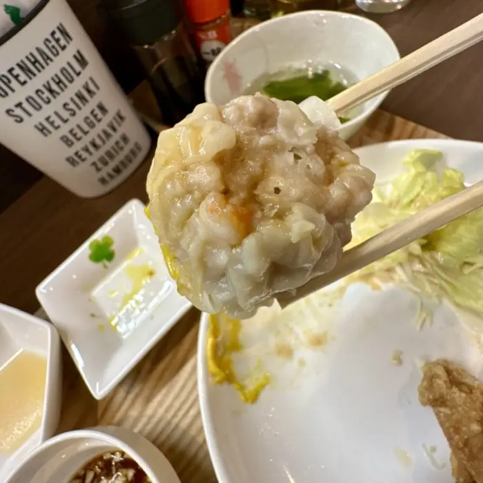 下味しっかりめのシューマイは醤油最低限がお約束、こちらも一口で訪れるハピネスタイムに身悶えてしまうやづ。